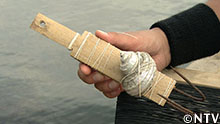イカの甲羅で、伝統のテンヤ釣りを行った。 |
