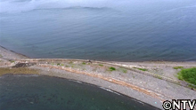 波が立つ度、浜に打ち上げられ、さらに潮の満ち引きで、