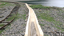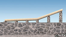 洲の上150m石の土台と和製コンクリート三和土の樋でつないでいく。