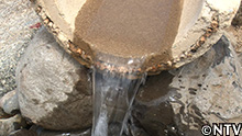 そして、ついにスタートから6分後、150mを流れきった水が、