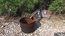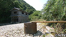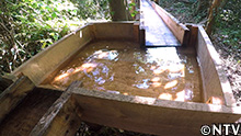あとは離れた木樋と三和土の樋をつなげば水は流れる。 |