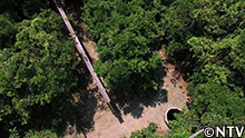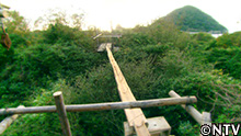 100本の樋を渡して、9ヶ月かかって、大小2つの島を繋いだ。