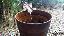 その先のポンプ櫓の下のドラム缶に溜める。 |
