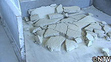 焼くことで、厚さ1.5cmだったガラス粉は約6cmの厚さに! |