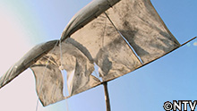 紐を引っ張れば、帆が畳める仕組みに改良。 |