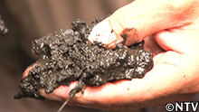 池に溜まった泥には、畑に使われる黒土の倍の栄養分があるという。 |