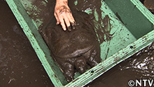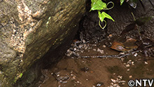 さらに、わずかに残った水の中には、生き物の影が…。