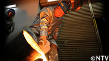 そして、溶かした鉄は、外に設置された型に流し込み、