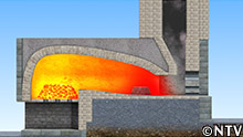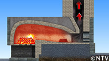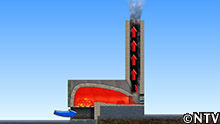 しかし、反射炉は、温められた空気が、高い煙突の中で上昇気流となり、