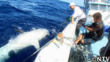 前泊さん「ロープが(暴れる)サメに当たって切れないように」