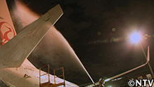 飛行機は着陸の時にタイヤが摩擦で大きく擦り減る。 |