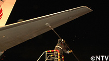 城島が向かったのは、飛行機を洗浄する洗機場。