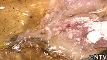 これを全体に、薄くムラなく付けたら、アケビ油で揚げる。