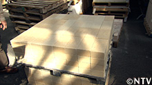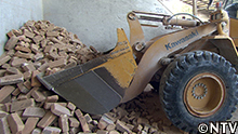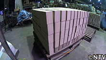 では、運搬トラックへレンガの積み込み開始。