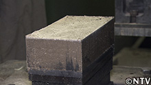 これをプレス機で、レンガの形にしていくのだが、