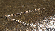 その場所を見てみると、川底の石にわずか1㎜の卵を発見!