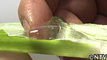 折ってみると、ヌルヌルとした液体が。