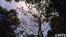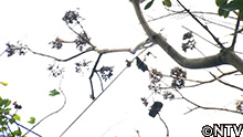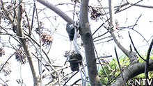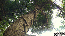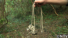 達也がボーラを高さ4mの枝へ。狙い通り上手く枝に絡まった。