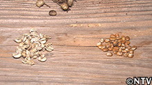 ヒヨドリの糞に交じっていた、ハゼノキの種。