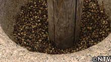 そして、取れた実は、石臼で砕き、種を割って皮を剥がす。