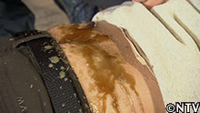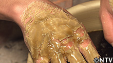 実際に溶かしたハゼ蝋を手に塗ってみると、