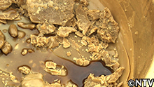 舟屋に持ち帰り、ロウソク作りへ。 |