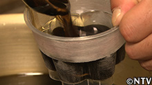 鍋で蝋を完全に溶かし切ったら、ロウソクの成型。