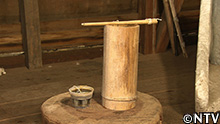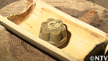 溶けた蝋を竹筒の中に入れ、固まるのを待つ。