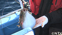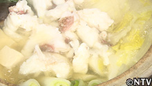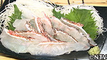 高橋さんの奥さんの眞澄さんに教えて頂き、大鬼の調理開始! まずは、毒針をハサミで切り落とし、身を三枚おろしに。 城島「身に弾力がある!」 フグのように身に弾力があるので、皮を火で炙って 薄づくりにし、 盛り付ければ「大鬼の炙り」の完成! 城島「すごい上品!美味しいですね!」 達也「弾力ありますね!皮がうまい!」
