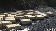 DASH島に運びこんだ、約1万個の耐火レンガ。