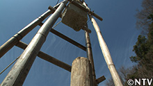しかし、ここは無人島、足場丸太で組み立てた脚立で。