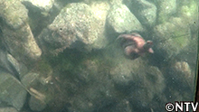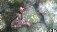 すると、岩陰からタコの足が伸びてきて、