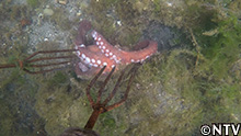 タコは、そんなエサを狙って身を潜めている。 |