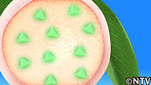 実の中の葉緑体が光合成をし、糖分を作り出す。