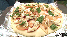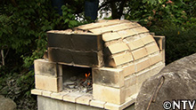 ピザ窯は直火ではなく、高温のレンガの余熱で一気に焼くため、