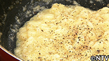 そこへ、塩と粗びきコショウで味を調え、氷水で冷やす。 |