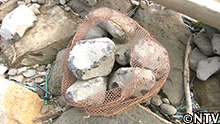 DASH島では、漂着物のネットに、石橋や水路の土台に使った石を入れ、