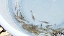 エビは水中で跳ね回り、その振動が魚を誘う。