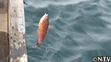 放した魚の中には、すぐに潜らず海面付近を漂うものも。