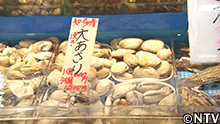 1個600円の大アサリなど、地元で水揚げされた魚介類も。