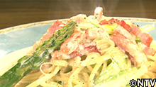 城島「麺に見立てたアスパラがシャキシャキしてて、甘みもある」 |