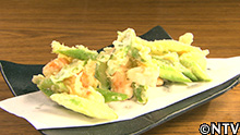 3品目は、エビとアスパラをさっと揚げた『かき揚げ』。