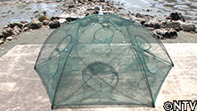 ワンタッチで折り畳むことができるカゴ網、その名も『六角網』。 |