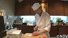 包丁を握る、弱冠34歳で料理長5年目の福本さん。