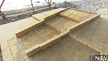 三和土で仕上げた斜面には、レンガの本場・岡山県の工場で調達していた