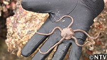 岩に隠れていたのは、細く長い腕が特徴のクモヒトデ。 |