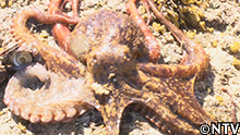 岩にへばりついたマダコを松岡が根気よく引っ張り出し、計2匹をゲット!
