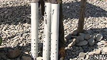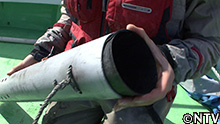 さらに集落跡で見つけた直径20㎝・長さ2mの塩ビパイプに穴を空け、