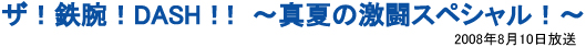 「夏の闘い」をテーマに、深夜放送から13年間走り続けたDASHの歴史を振り返る真夏の激闘スペシャル! 手に汗握る対決、若きTOKIOなど、懐かし映像一挙公開!! 今回、振り返った過去の放送内容はコチラ! |