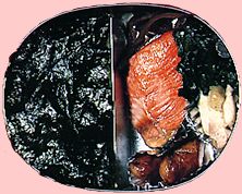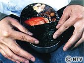 | ご飯の上にのりをのせ、弁当の型と同じように切る。 | ![]() |